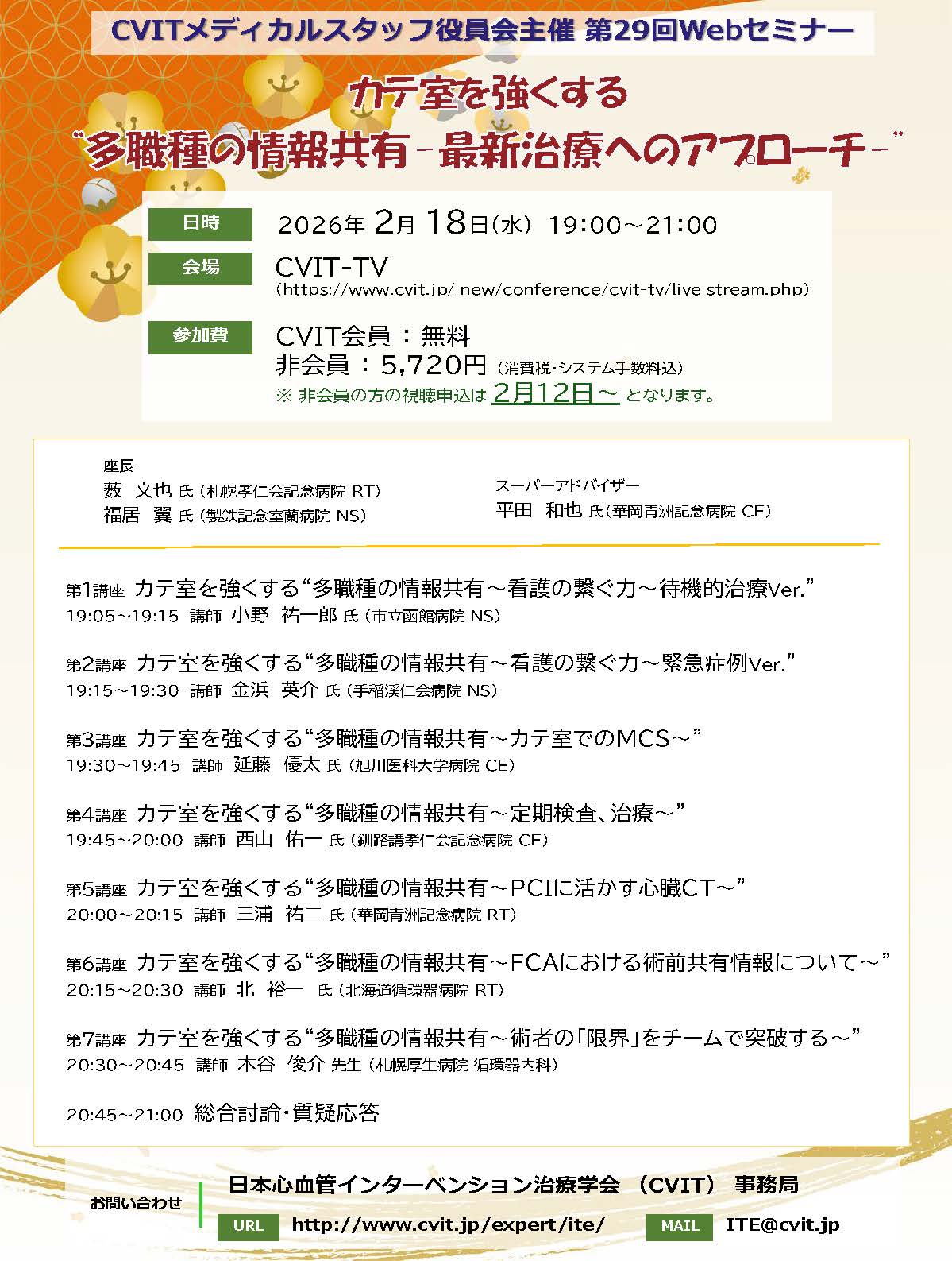 メディカルスタッフ役員会主催 第29回Webセミナー「カテ室を強くする“多職種の情報共有~最新治療へのアプローチ~”」