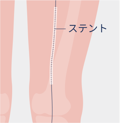 カステント治療は金属の金網であるステントや人工血管であるステントグラフトを用いて病変を拡張する治療です。主に大動脈や腸骨動脈(足の付け根より上の動脈)や大腿動脈といった血管に対して使用されます。大腿動脈病変(足の付け根~膝の血管)では、1年で40〜50%程度の再狭窄(治療した部位がまた狭くなること)があることが大きな問題でした。最近では,再狭窄を抑えるための薬(パクリタキセル)が塗られたステント(薬剤溶出性ステント:DES)やバルーン(薬剤コーティングバルーン:DCB)が登場し、治療効果が改善し、広く使用されています。
