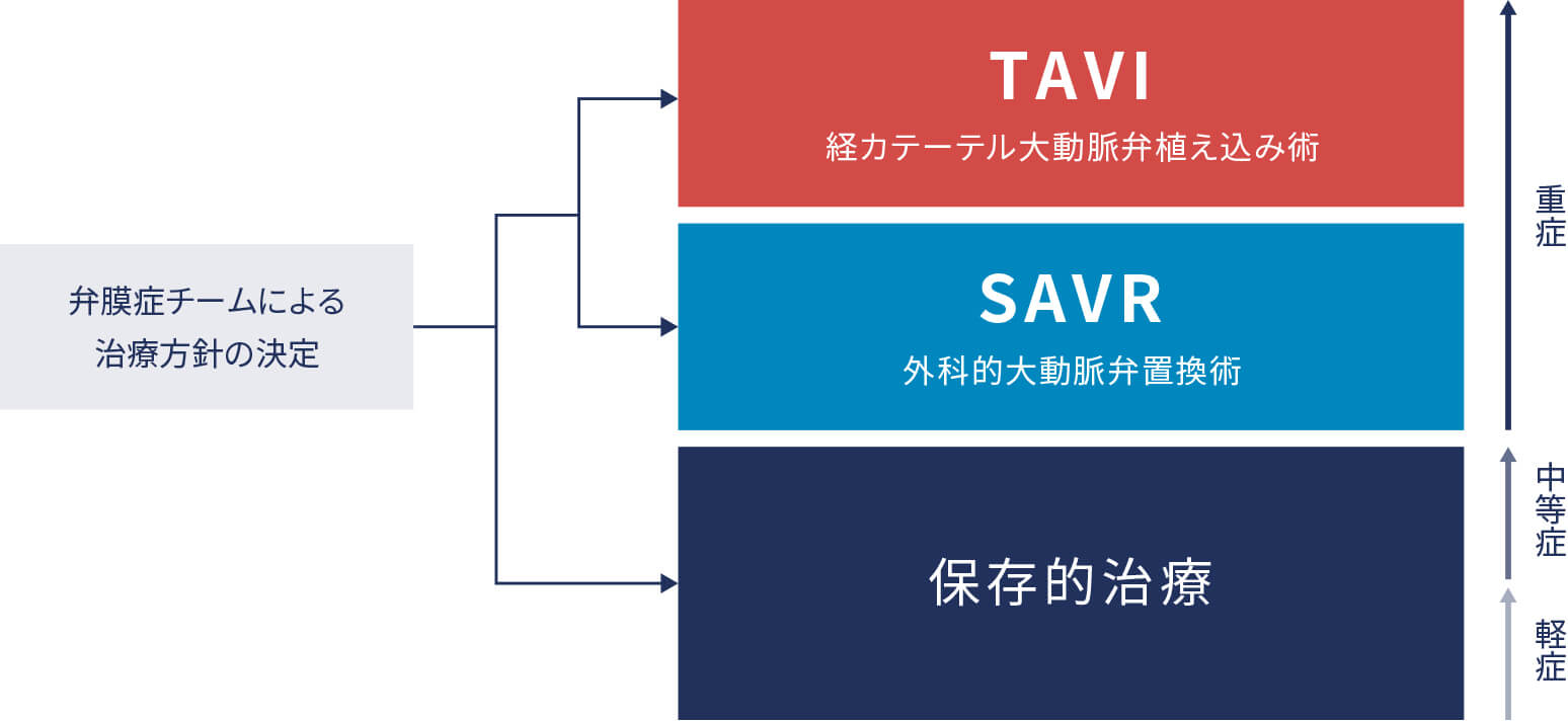 大動脈弁狭窄症に対する手術は「大動脈弁置換術」と「 経カテーテル大動脈弁留置術 TAVI(読み:タビ)」があります