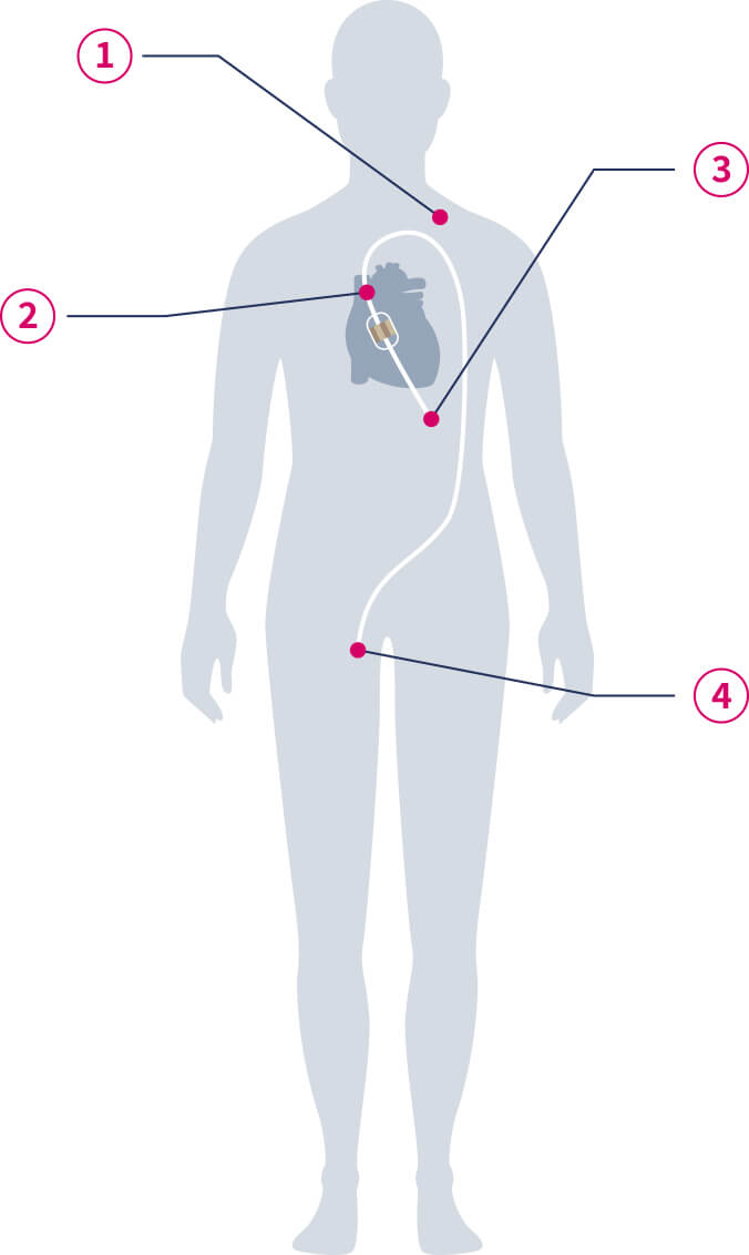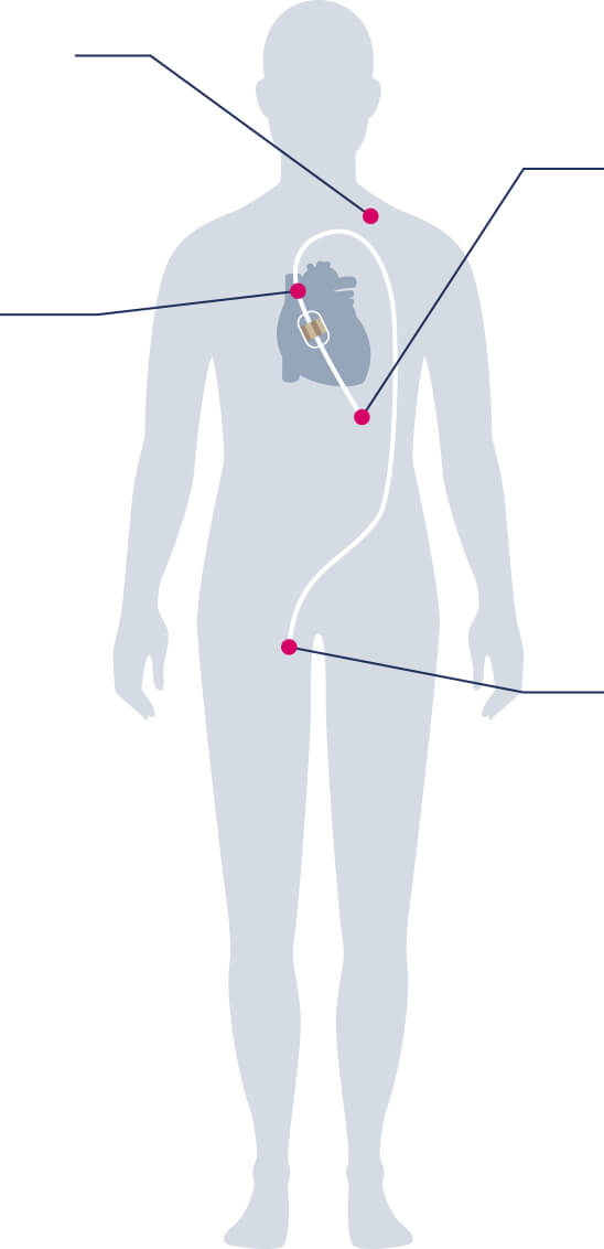 肋骨上部を小さく切開し、上行大動脈からカテーテルを挿入します。